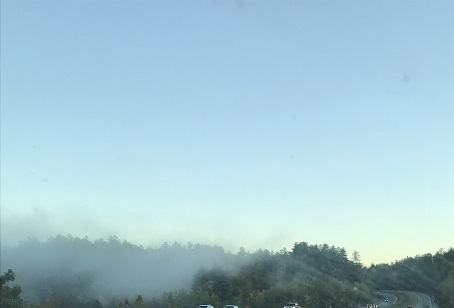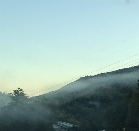 周五下午出发北上,雨后的山坳里轻雾腾起,