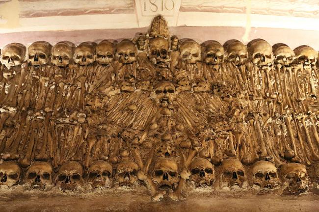 我看到,骨骼中以头骨和肢骨为主体,少胸骨,椎骨,肋骨等。人骨可以说就是那教堂的建筑材料而不是作为装饰品存在。有的头骨较小,上面的骨缝清晰,我有限的人类学知识告诉我,那或许是一个早逝的孩子。 一边看一边想象当时的建筑者,在堆砌这座教堂时会是怎样的心情。