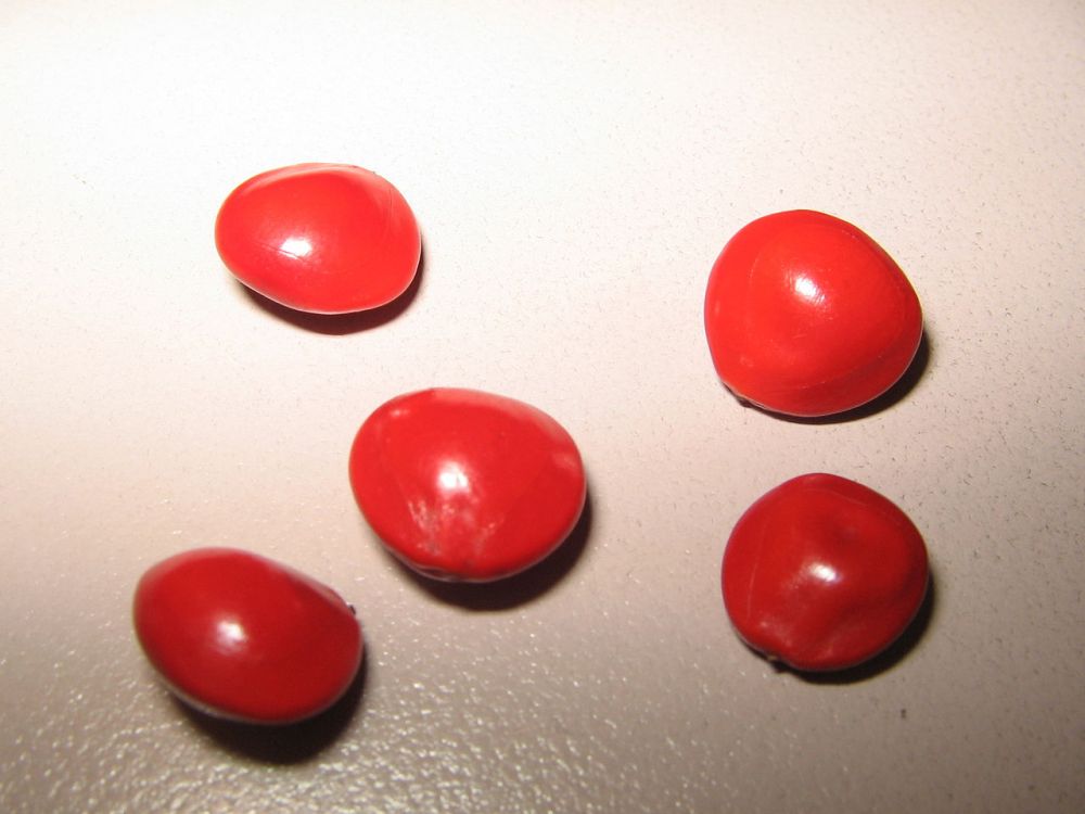 当然,我猜王维可能见过红豆。也许是他的某个好朋友到过南方瘴疠地,周游世界带回了珍稀异物,送给了他。至于红豆的植物长什么样,并不清楚。豆子么,估计和黄豆,绿豆,豌豆差不多吧。他有可能不知道的是,这种相思豆,是长在高大的树上的。那么,问题来了,高高的大树,你怎么“采撷”?又不是茄子、黄瓜,可以顺手采撷。除非养个猴子爬树上去采。其实,这种相思豆,有微毒,不能吃。没事采来干嘛。等到成熟了,自然就掉地上了,你去捡起来就行了。相思豆非常坚固,掉地上也不会砸坏。