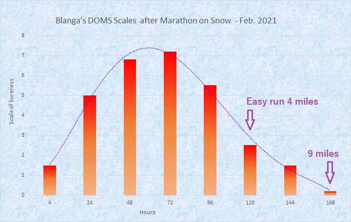 DOMS不是乳酸堆积,那只会在一小时或者几小时之内出现。我第一天放了1.5,不必担忧。4小时表示从比赛开始,而不是结束。因为那时什么都还好,也什么地方都酸痛。我不知道会有这么明显的DOMS。严重的是,72小时的感觉超过了48小时。确实是节棍的赛事。我原以为三天就好,哪知三天72小时才到峰值。一周才好。