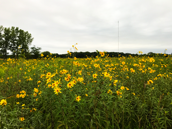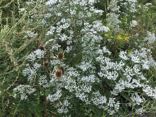 那个挡在路中间的是到处都有的金杆花(Golden Rod)。象征着金秋的到来。