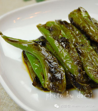 虎皮青椒,是一道很民间的四川名菜,是将青椒表面炒得略微焦糊,斑驳的焦糊点如同老虎的花纹一样,所以得了虎皮青椒的美名。