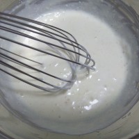 11. 将奶油奶酪,牛奶,酸奶,搅拌均匀,如果奶酪有颗粒,可以把盆坐在热水里搅拌(放凉备用),拌匀后加入酵母融化