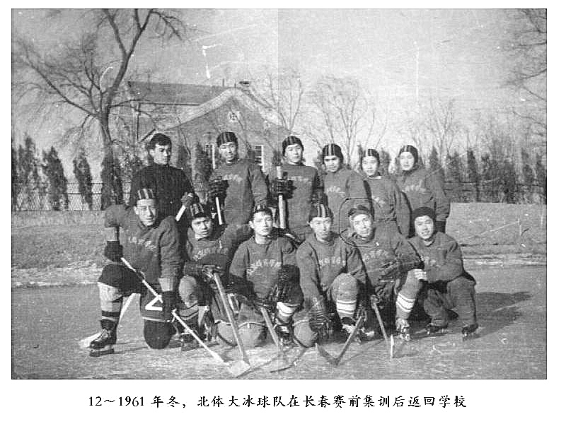 我们的教练(曾获全国花剑亚军,北京市重剑枪剑两项冠军,击剑国家裁判)被调到中学任教,我们58级击剑专业共11人(男生8女生三人),三种剑(花剑,佩剑和重剑)各留一人,两个人转到田径系,两个人抽调到预科当文化教员,我转到水冰系冰上冰球专业。在击剑专业的两年里除了有机会做全国和市级比赛的裁判工作而得到理论与实践相结合的机会,但从没有机会参加比赛,因基本上就没有比赛可参加,仅有的一次机会是1959年10月份世界击剑强国-匈牙利国家击剑队来华访问,队员中有世界冠军,对我们是一次绝好的学习机会,我的学长代表中国和北京市参加了中匈友谊赛。在冰球专业的三年学业中,与仅有的一次全国比赛机会擦肩而过,在1960年底我们冰球专业的一至三年级的学生和老师组成的北京体育学院代表队到吉林长春市参加全国冰球乙级联赛,当年中国还没有室内冰场,室外温度经常是零下20-25度,那时我们在吉林省运动队用餐,已经是困难时期,每人发给的一斤白糖在下了训练课连脱护具的力气都没有时,空口吃半斤白糖后才脱下护具。就在比赛开幕式的前三天国家体育运动委员会下达文件:鉴于国内目前处于经济困难时期,全国性体育比赛一律停止举行。返校后,训练量明显减少,回宿舍基本就是躺在床上保存热量,很多同学因吃不饱又缺乏营养得了浮肿病,经医务室大夫开病假单可领到一定数量的黄豆粉和卧床休息不得参加练习。上天还是很眷顾我们这批历经大跃进,大炼钢铁,人民公社化运动,三年困难时期的似坐过山车之大起大落的政治年代,在1963年初,我们即将完成五年大学的学业的最后一学期,北京市体委举行冬季“跃进杯”冰球联赛,正值是寒假和春节期间,我们放弃一切为了比赛,最终我们以全胜的战绩获得冠军,北京什刹海体校冰球队获得亚军,总算是参加了一次市级(相当于省级)比赛,唯一遗憾的是集体项目而不是个人项目。总之,在大学生活的五年虽然经历了大跃进,大炼钢铁,大运动量训练,三年困难时期节粮度荒,我命运算好的,没被饿出浮肿,也没被训练出一身伤病残疾,为以后的生活打下了良好基础。