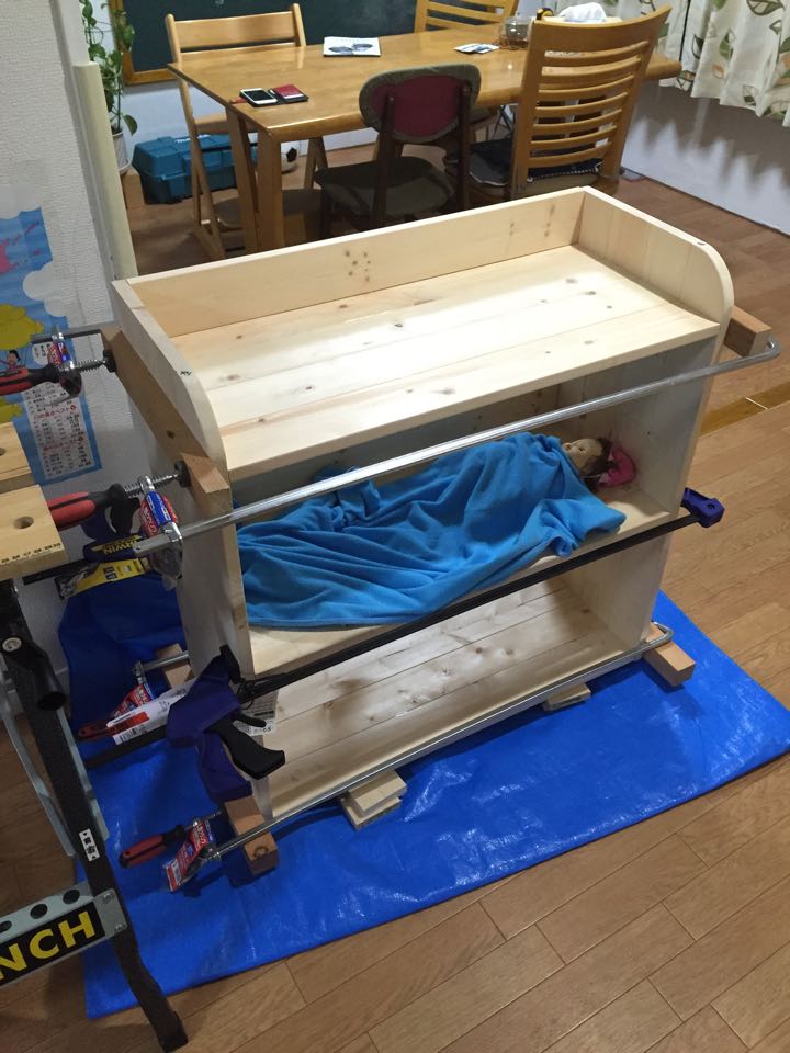 乳白胶全干之后,撤掉F夹,用240号砂纸打磨板面准备刷漆。