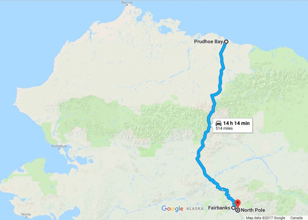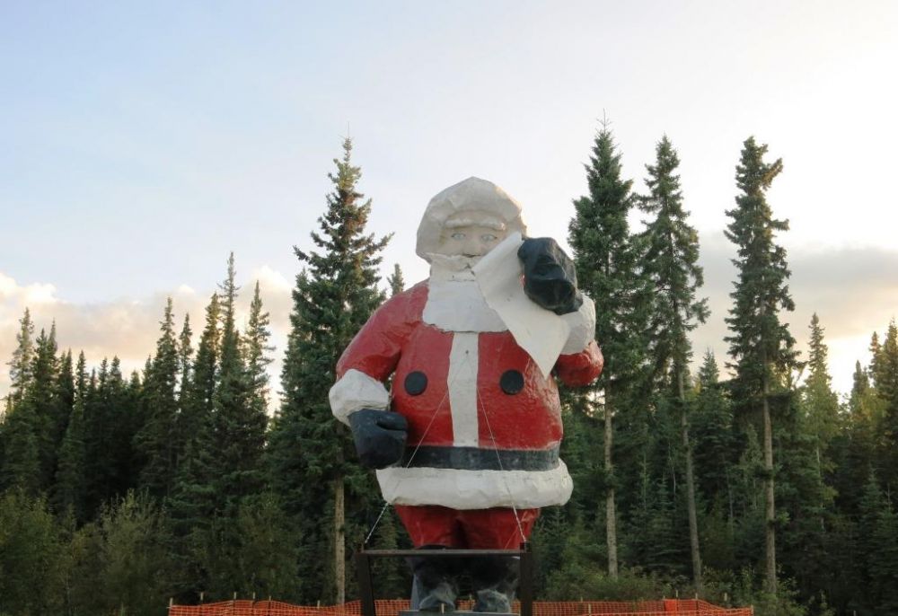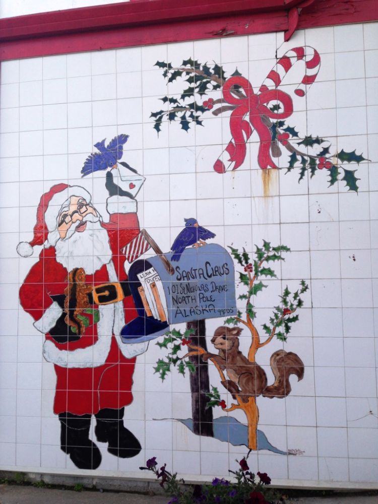 车开到哪里是今晚的归宿呢?根据多儿的简易版路书,在费尔班克斯附近还有一个小镇,名叫北极(NORTH POLE)。其实,人家是一个市。为什么善意地说它“冒牌”呢?完全是因为它跟北极一点儿关系也没有。真正的地理北极应该是北纬90度。而这个北极村(我们暂且称它为“村”好了),它的地理坐标却是 (北纬64.7511, 西经147.3494)。占地面积4.2平方英里,水域总面积0.1平方英里。据2014年阿拉斯加劳动部预测,人口2198人。就这样,市内公立学校还有四座呢。