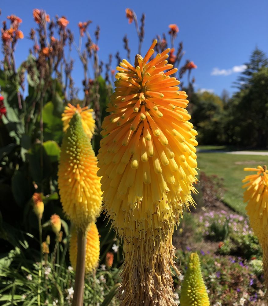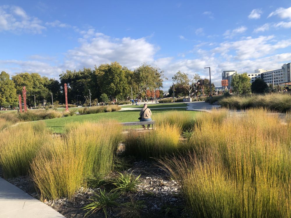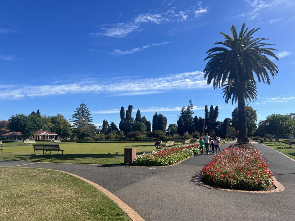 沿着街道随意地走着,只见街边的花坛里种满了各种秋季花卉,菊花、金盏花、薰衣草在阳光下绽放,散发出淡淡的香气。微风拂过,花瓣轻轻摇曳,仿佛对俩人的到来表示欢迎。多儿兴奋地观察着这些花朵,脸上满是对南半球花草的好奇和欣喜神情。