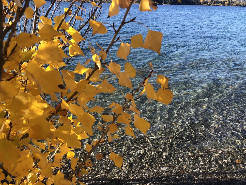 告别那棵树,两人沿着湖边,仔仔细细端详着阳光下像金子发亮的树叶。秋天,秋景,外加湖水,多儿俩人不容分说就开始走起了环湖步道,绕湖反时针行走。看能到哪算哪。。据查证,瓦纳卡湖附近地貌是由超过1万年冰川雕刻而成,才形成了如今独特的U形山谷。湖水主要由马图基图基河和马卡罗拉河注入,而克鲁萨河则是其出水口。湖泊沿南北轴线延伸42公里,最宽处达10公里。