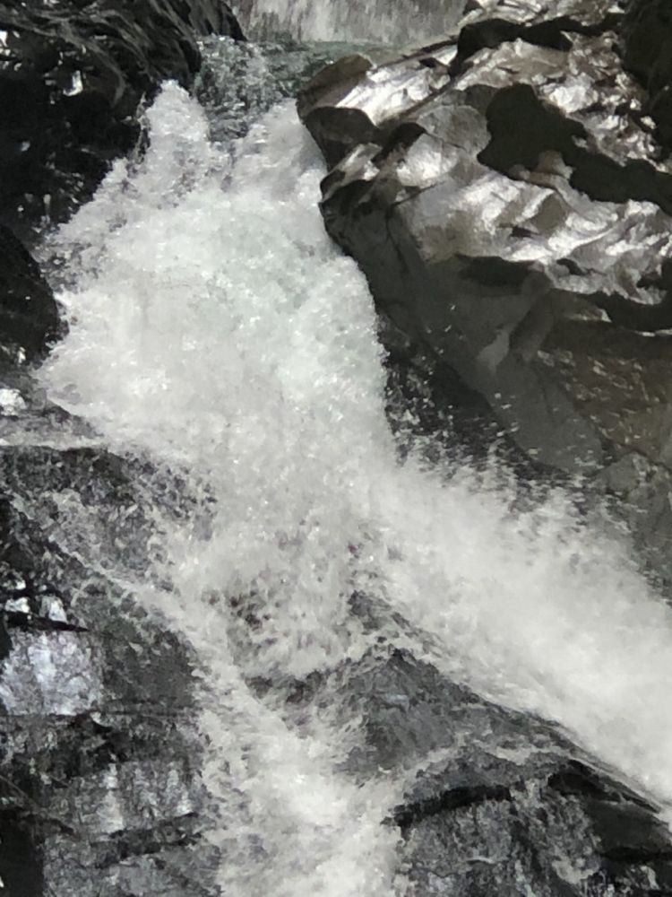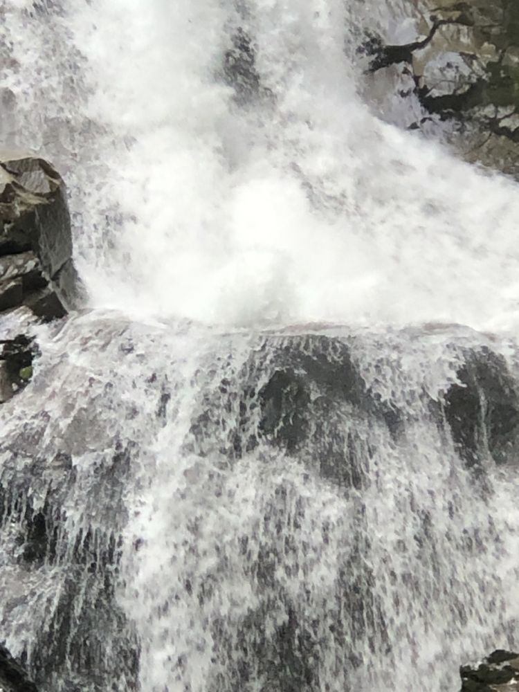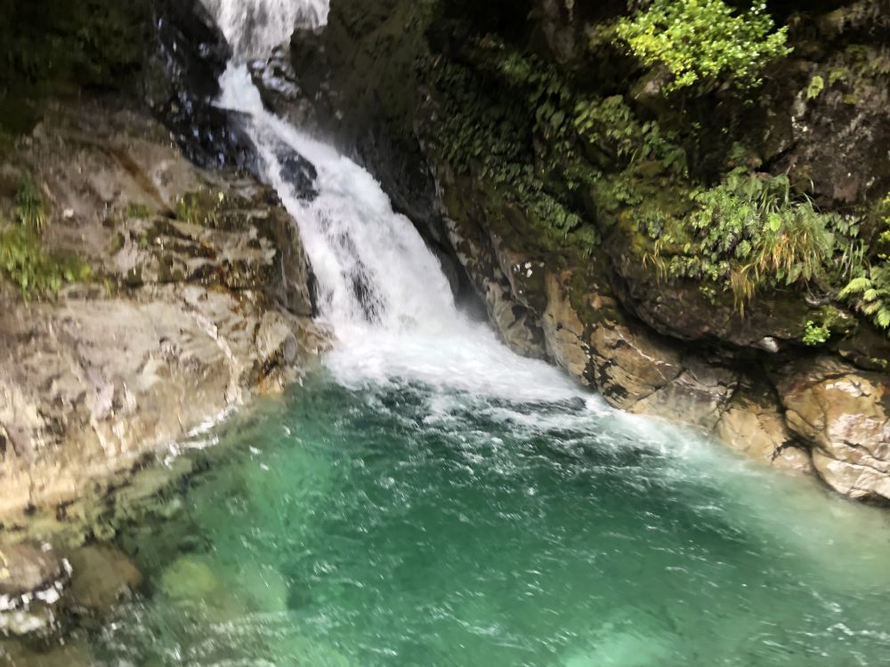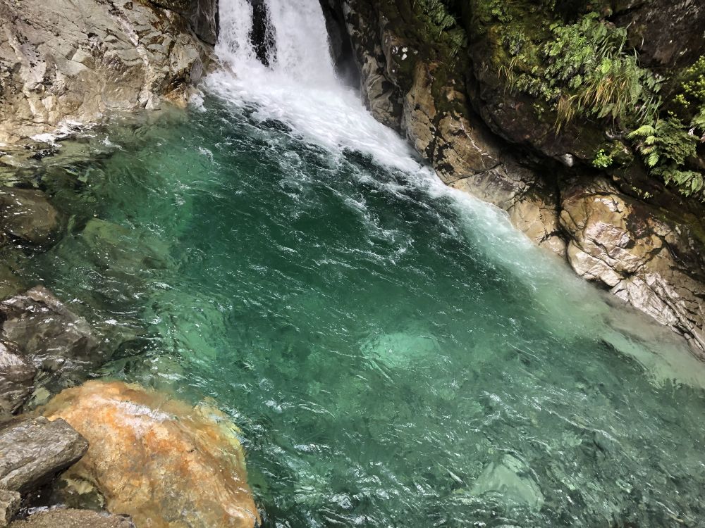 “水的颜色太独特了。”多儿注视着瀑布下的水潭,水潭呈现出的宝石绿色,水面如镜,清澈见底。水流湍急,给人一种振奋向上的力量。