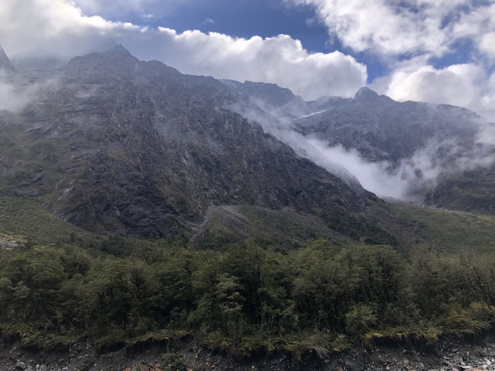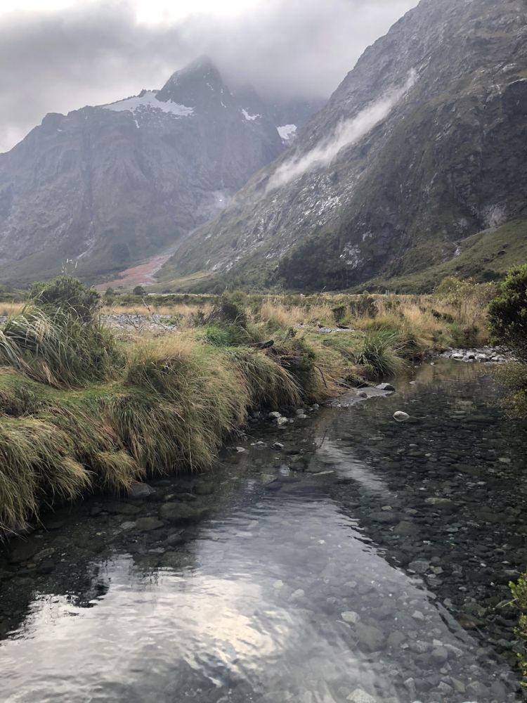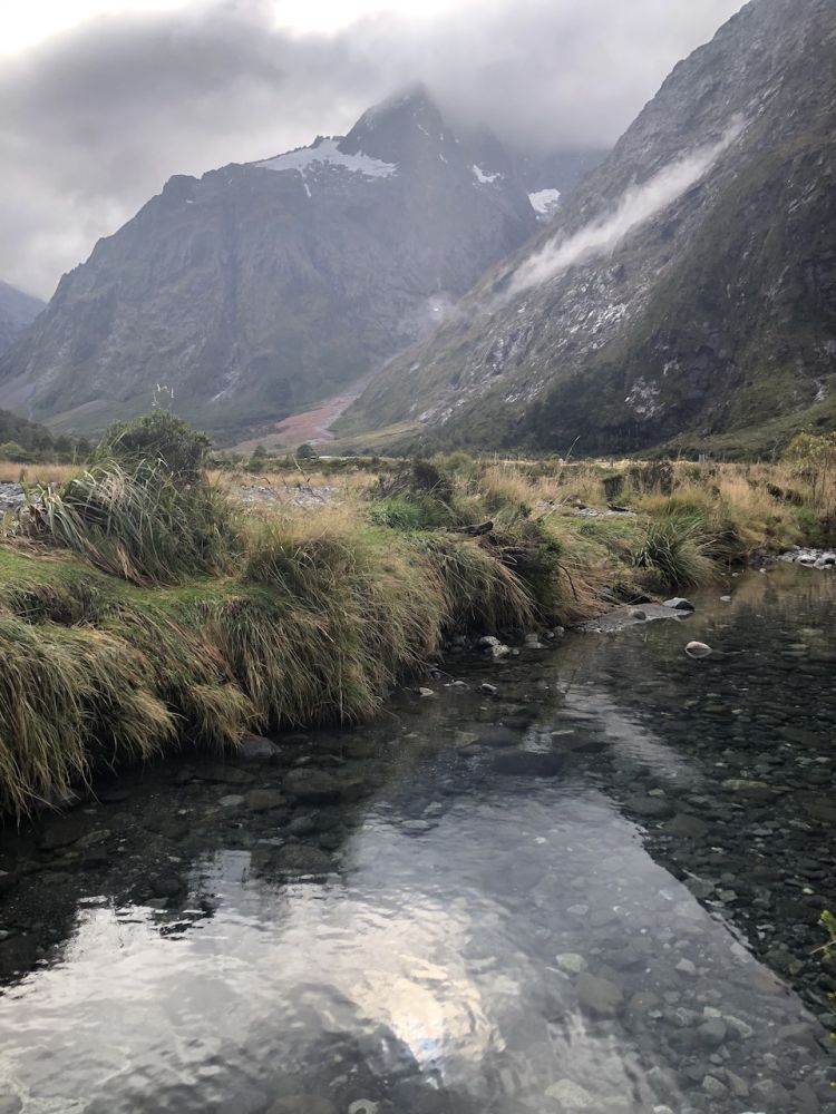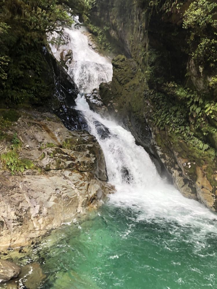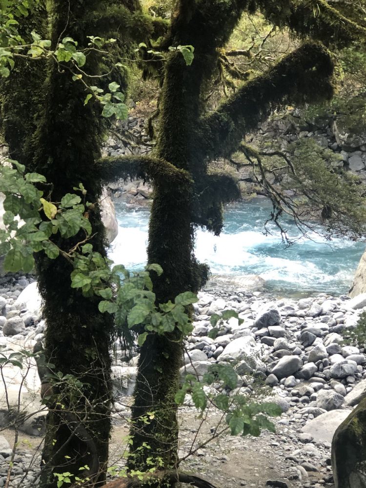 猴溪,就位于米尔福德峡湾出来,经霍默(Homer Tunnel)隧道之后,是一个相对隐秘的地方,但却是一个不容错过的自然景点。车停在路边,多儿两人下车后,环顾四周,便被这片静谧的山水之地深深吸引。