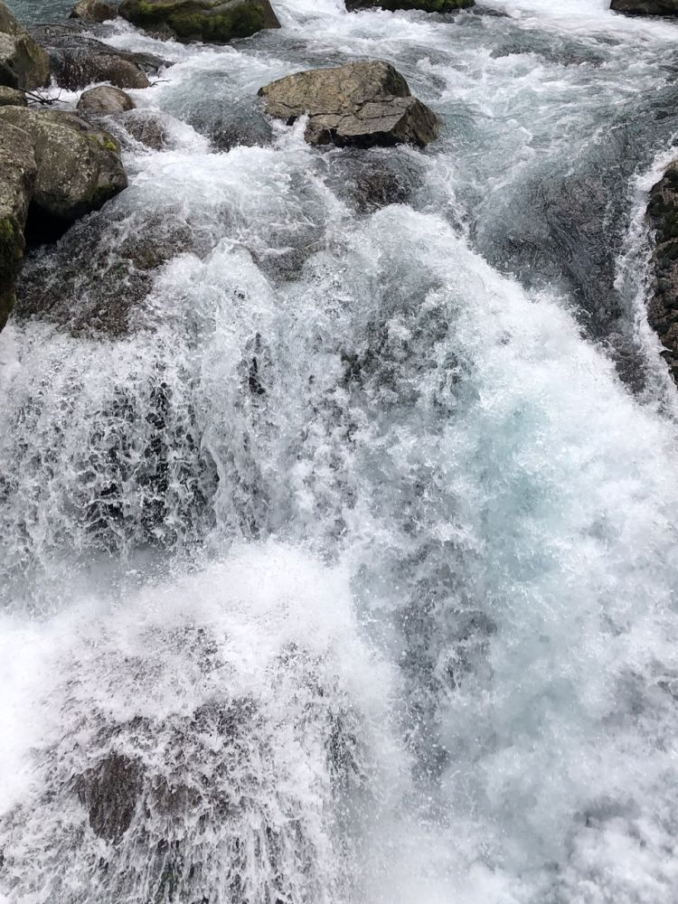 再回头时,发现在俩人身后,又跟上来一位女士。她也迷路了。我们跟她说“好像迷路了。当务之急得迅速找到正儿八经的步道,咱们才能向前啊。她说“不用着急,大家离步道好像还不太远。”在密林深处摸索着,一直没有明显的路标。四周植被茂密,瀑布的轰鸣声也依旧清晰,但心里渐渐开始打鼓了:脚下真的没路!这种模糊会持续多久呢。