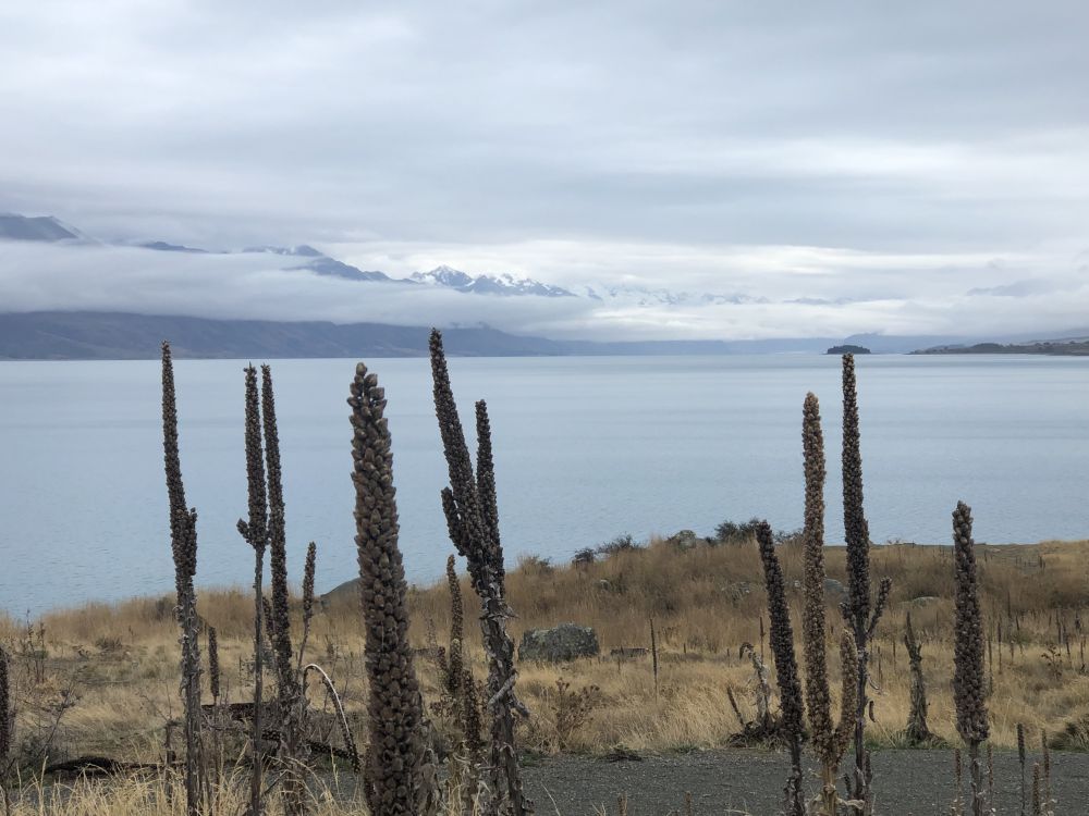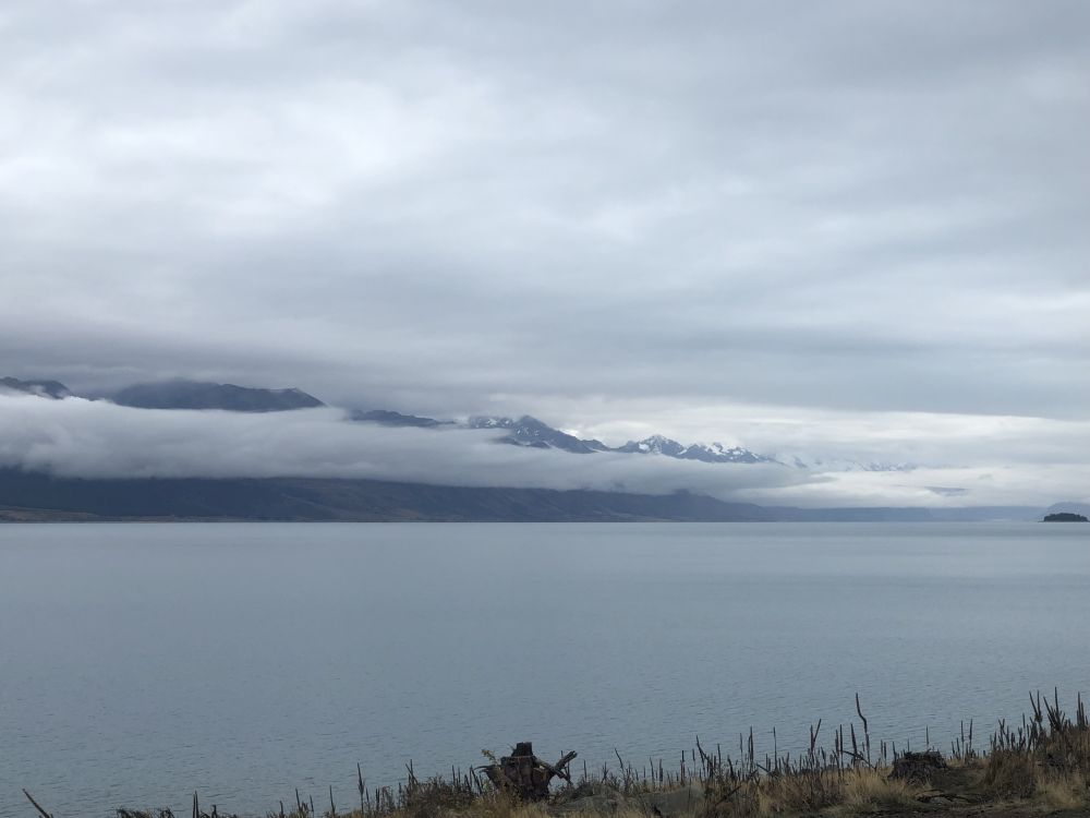 下午1:00,多儿与皮儿从位于南岛的蒂卡波(Tekapo)湖畔出发,开启了一段经普卡基(Pukaki)湖向库克山进发的短途旅程。全程105公里,估计1小时20分钟即可抵达。尽管当天阴云密布,未能欣赏到普卡基湖那传说中如蓝宝石般的色泽,但湖水在云雾中展现的另一种静谧美,依然令人心醉。