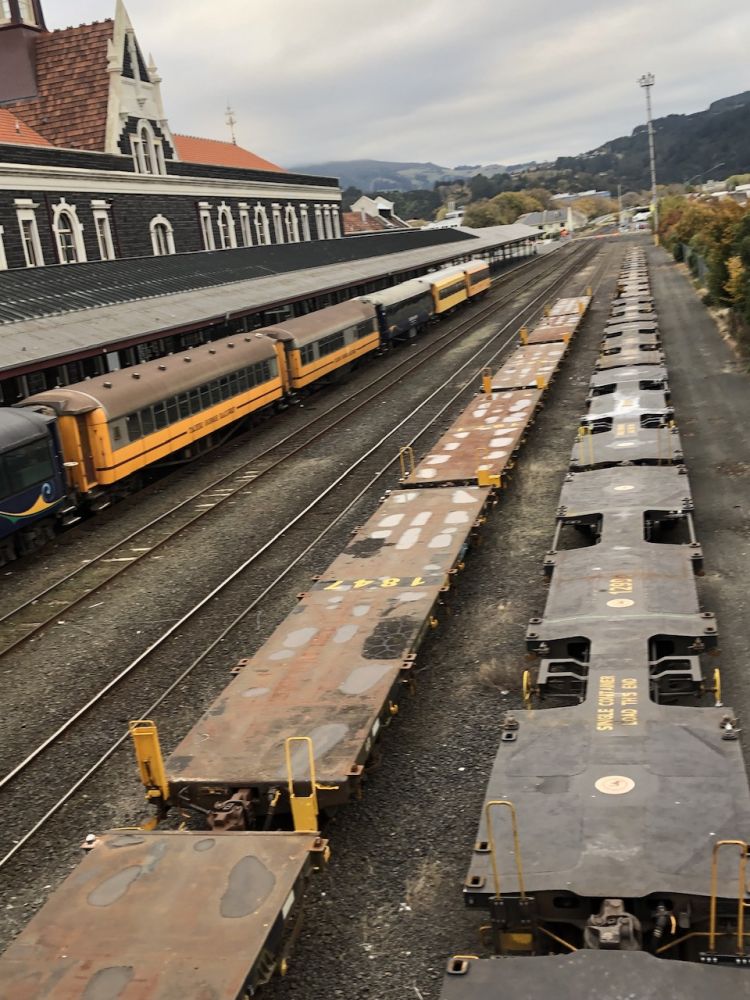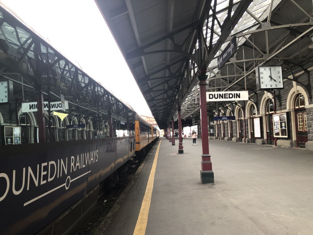 再推门从另一端出来,就是火车站的站台了。但尼丁火车站的主站台长约500米,是新西兰最长的站台。但尼丁铁路公司目前实行缩减班次的运营模式。列车线路包括穿越泰伊里峡谷(Taieri Gorge)前往欣登(Hindon)的“Inlander”号列车,沿海岸线驶往怀塔蒂(Waitati)和锡克里夫(Seacliff)的“Seasider”号列车,以及前往北奥塔哥小镇奥马鲁(Oamaru)的全日游列车“The Victorian”。