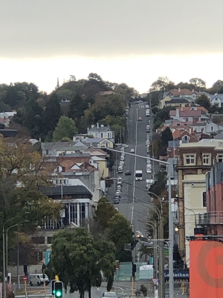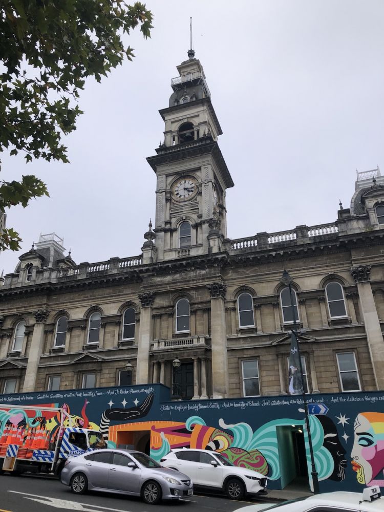下午三点半,阳光斜洒在但尼丁的街道上,透过云层,投下温暖而柔和的光影。多儿和皮儿从八角广场(The Octagon)出发,沿着乔治街缓缓向南,准备去探访这座城市最具代表性的建筑——但尼丁火车站。