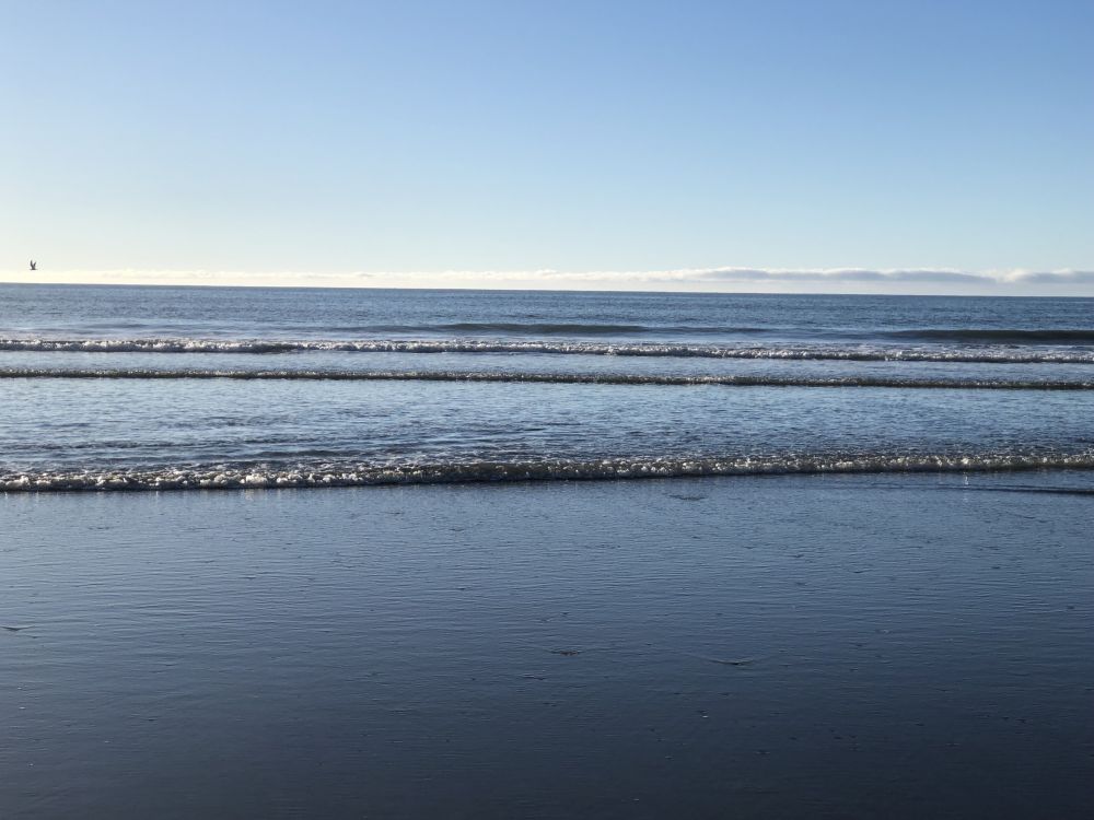 “再见了!崴库库海滩(Waikuku Beach)! 再见了,迷人的沙子和海浪!再见了,这片不可多得的宁静和温馨!”