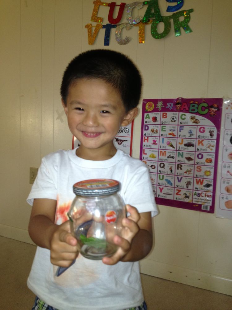 妈妈,这是我在学校发现的毛毛虫。爸爸为此还特意摘了些新鲜的叶子来喂它,还在瓶盖上转了两个小孔。不过还是被弟弟小朋友第二天放学回家时不小心给压死了 :(