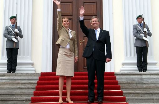 和薄督相似,伍尔夫曾是德国的一颗政治明星,位居下萨克森州州长多年,普遍认为将是基民党(党魁为现任总理默克尔)的接班人, 2010年6月,51岁的他成为了德国最年轻的总统,风光一时。下图是伍尔夫和夫人贝缇娜在总统官邸贝勒维宫的合影。