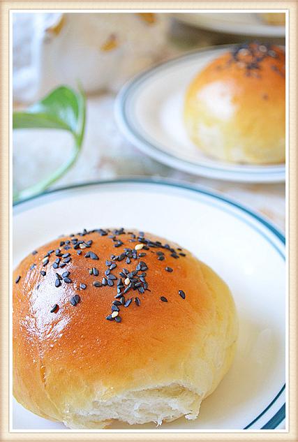 8 发酵好的面包坯刷上蛋液,撒上白芝麻或黑芝麻;