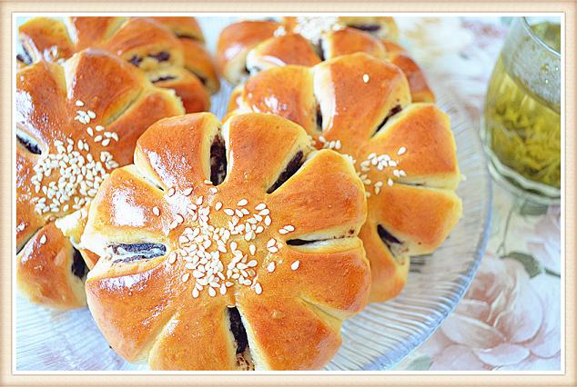 盐1/2 TBP,芝麻少许起点缀作用,没有可以不用,自制的红豆沙馅