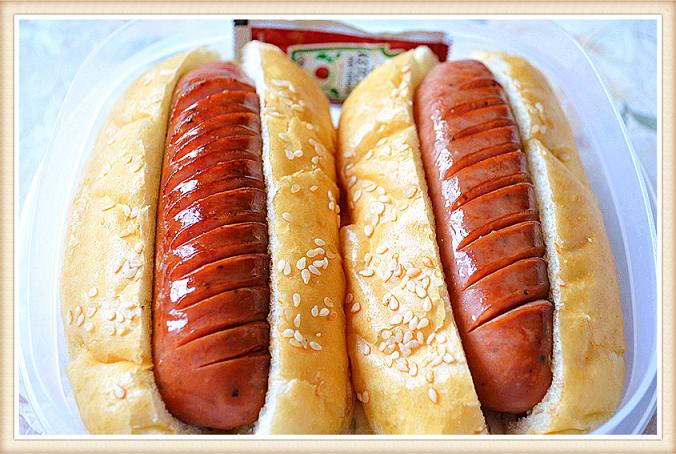 热狗面包可以简单地称为夹了香肠的三明治,一直以来都是儿子的最爱之一。吃热狗就像吃三明治一样,可以配上很多种类的配料,比如洋葱、生菜、番茄等,放在上面的酱汁也有很多选择,比如番茄酱、芥末酱、美乃滋等,这些完全可以依照自己的口味来随意搭配。香肠基本上我都是从超市买,当然,超市里用于做热狗的香肠也是琳琅满目,吃到嘴里感觉肉性比较足的就是儿子喜欢的了,千万不要买那种吃到嘴里有面面的感觉的香肠,感觉好像里面放了好多淀粉,用这种香肠做出来的热狗的味道会大打折扣。