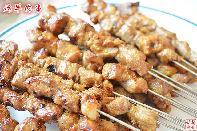 把羊肉切成1CM左右的小块,放入盐、少许糖、辣椒面和用孜然粒现打碎的孜然粉拌匀,最后放少许生粉水再拌匀,腌制1个小时左右。然后将羊肉块串在签子上,烤之前可以用刷子在羊肉串上刷少许油,可以防止肉粘在烤架上。没有专门烤羊肉串的炉子,就用现成的烧烤炉,使用一个炉头把羊肉串侧放在烤架上,一次可以放十几串,足够供应喜欢吃肉的儿子和LG了。烤出来的羊肉串很入味,而且汁水足。