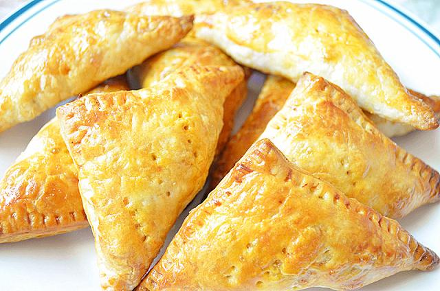 把酥皮切成九份做成的九个小咖喱角倒是很好的下午茶点心,