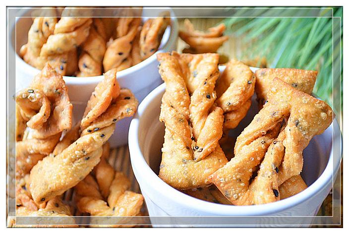 人们对油炸食品总是包含着太多的复杂的情感,可以说是又爱又恨。爱的是它那让人回味无穷的味道,恨的当然就是它可能对人体健康存在的潜在的伤害。如果觉得从外面买的油炸食品不放心,因为不知道这油的来源,有时候不如自己动手在家做一下也不是很费事。所有的一切都是为了吃的放心。巧菓,北方人称之排叉,就是我小的时候非常爱吃的一道零食,它可以做成甜味的,也可以做成咸味的,完全依照个人的口味,所用的原材料也非常简单,就是面粉、糖或盐,以及炸油。为了增加香气,可以适量地加入芝麻。甜味的巧菓油炸以后,还可以撒上适量的糖分,不仅好看,而且增香。今天在家突然好想吃这道点心,于是就心动不如行动,做了咸味的巧菓。这可不是一次吃完的噢,留着下周慢慢品尝。