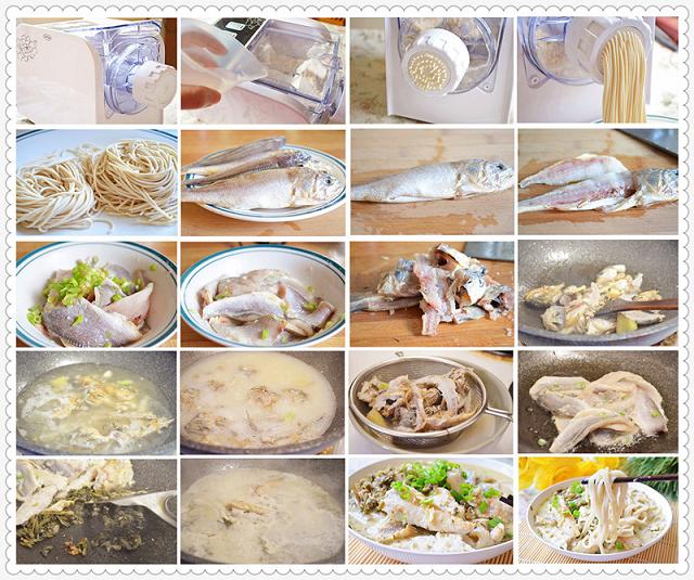 因为在上海生活了很多年的缘故,对于上海的黄鱼面始终恋恋不忘。春夏之际,又到了吃黄鱼面的季节,按捺不住对这道美食的渴望,于是在家动手做起来。制作黄鱼面的时候一般都会配上一年腌制的雪菜,这两样食材的组合才能使黄鱼面的味道达到最高境界,当然如果能再配上当年的春笋,自然就是更加美味了。在海外买不到新鲜的黄鱼,只能买鲜冻的,本来还有点担心会比较腥,谁知成品出来以后味道非常好,看来不用回国也可以吃到滋味十足且鲜味十足的黄鱼面了。要知道好吃的黄鱼面,面条的筋道也是很关键的,最近家里添了一台自动面条机,随吃随做,一般我会选用手动和面档,和面两次以使面条更加筋道,出来的面条果然和想象的一样。在我把黄鱼面做好,然后再拍照,拍照结束再来吃面,居然面条都没有烂掉,有了这个厨房小帮手,吃筋道好吃的面条也不再是难事了。