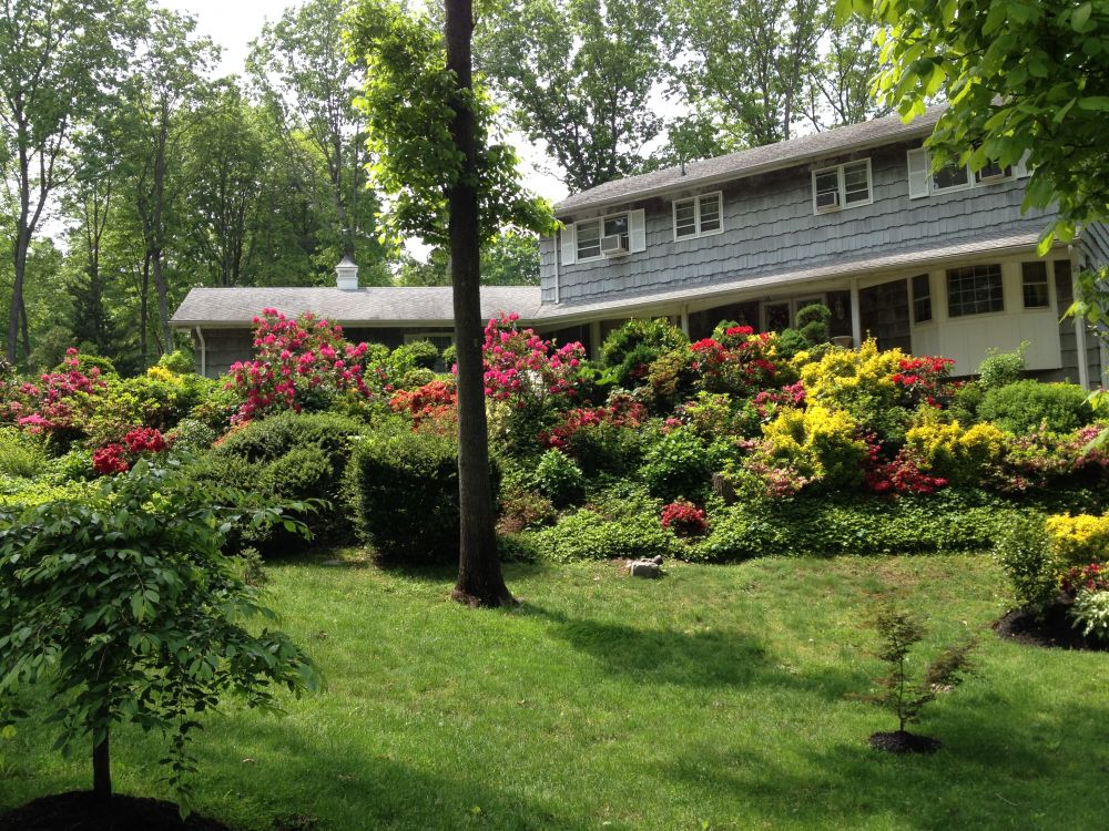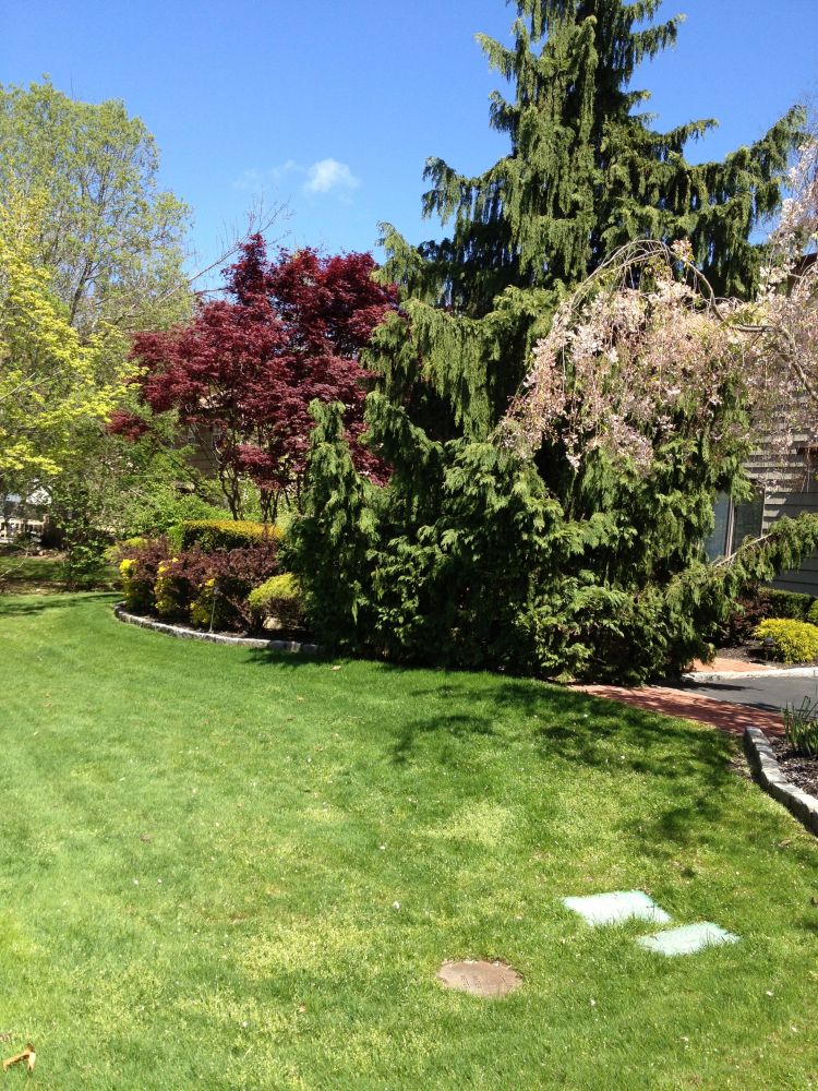 俺要传一些照片给大家,不同的月份的纽约人的居住前后花园景色。