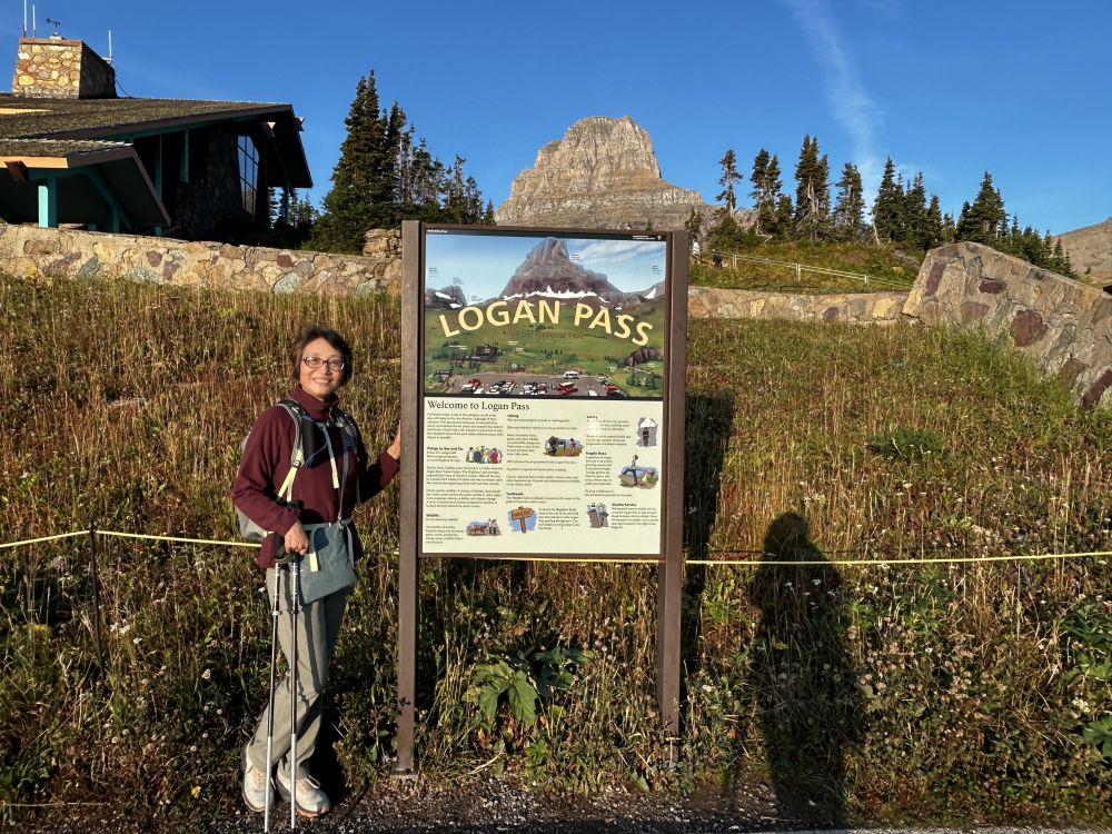 路边走了好一会,身边都是谨慎行驶的汽车,这里开车都很规矩,遇到徒步者都会减速。最后终于回到了Logan Pass,此时太阳已经老高了,早晨的金山和朝阳景色已经没有了。我们这才开始吃早饭,不慌不忙。只要我们愿意,在这里待到几点都可以,不必再为停车位发愁了。