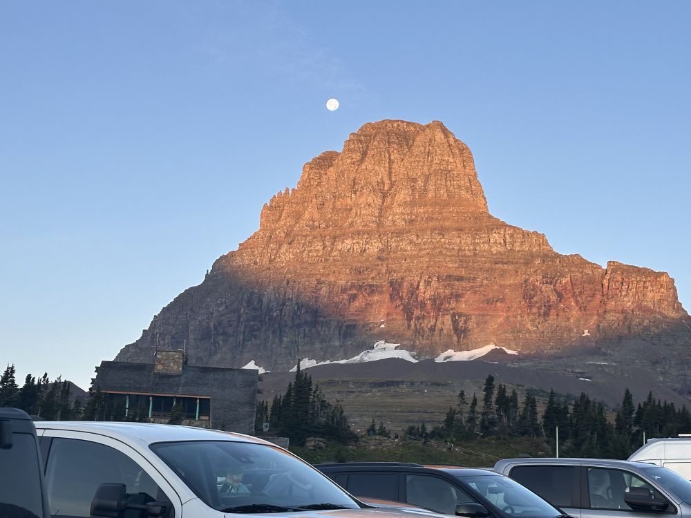 有了前一天的教训,我们决定第二天更早起床,更早到达Logan Pass。晚上我也没必要抢票了,反正早上七点我们都己经到停车场了。我设了五点起床的闹钟,三点四十就莫名其妙地醒了,然后就开始紧张,怎么也睡不着了。不到五点胡班长也醒了,我们干脆起来,尽早出发。