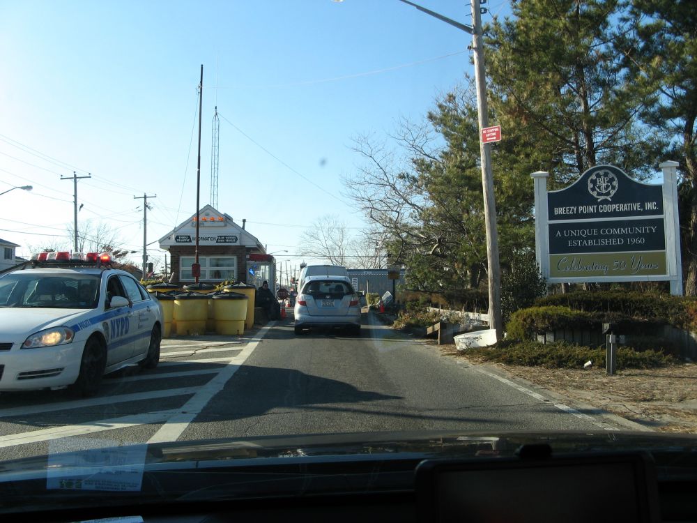 这是进入Breezy Point的岗亭。访客进入这个社区是需要通行证的,由住户提前购买。里面的一些小区也设置了路障,要投入专门的币才能通行。由此可见这个社区的安保做得很好。听一个送外卖的小伙子说,每次他一进大门,那些保安盯着他就跟防贼似的。飓风之后,有很多警车在这里巡逻。