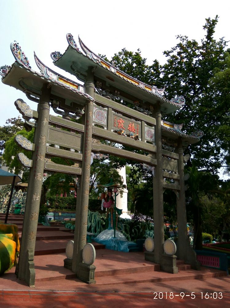 两座牌楼,其中一座还有郁达夫在新加坡时做的题词: