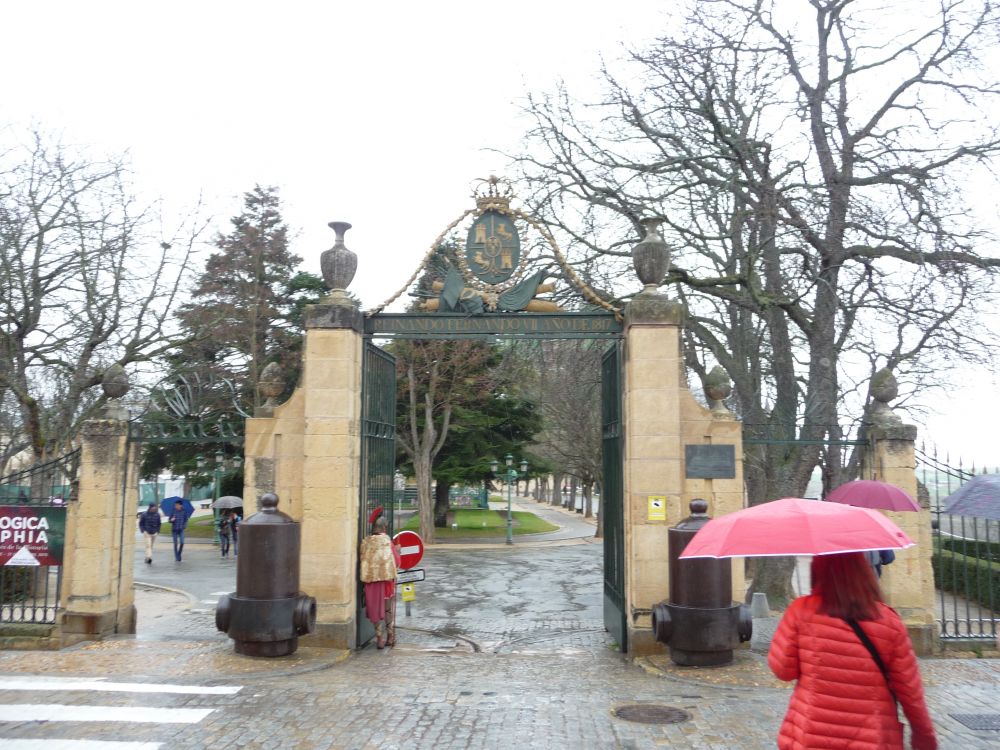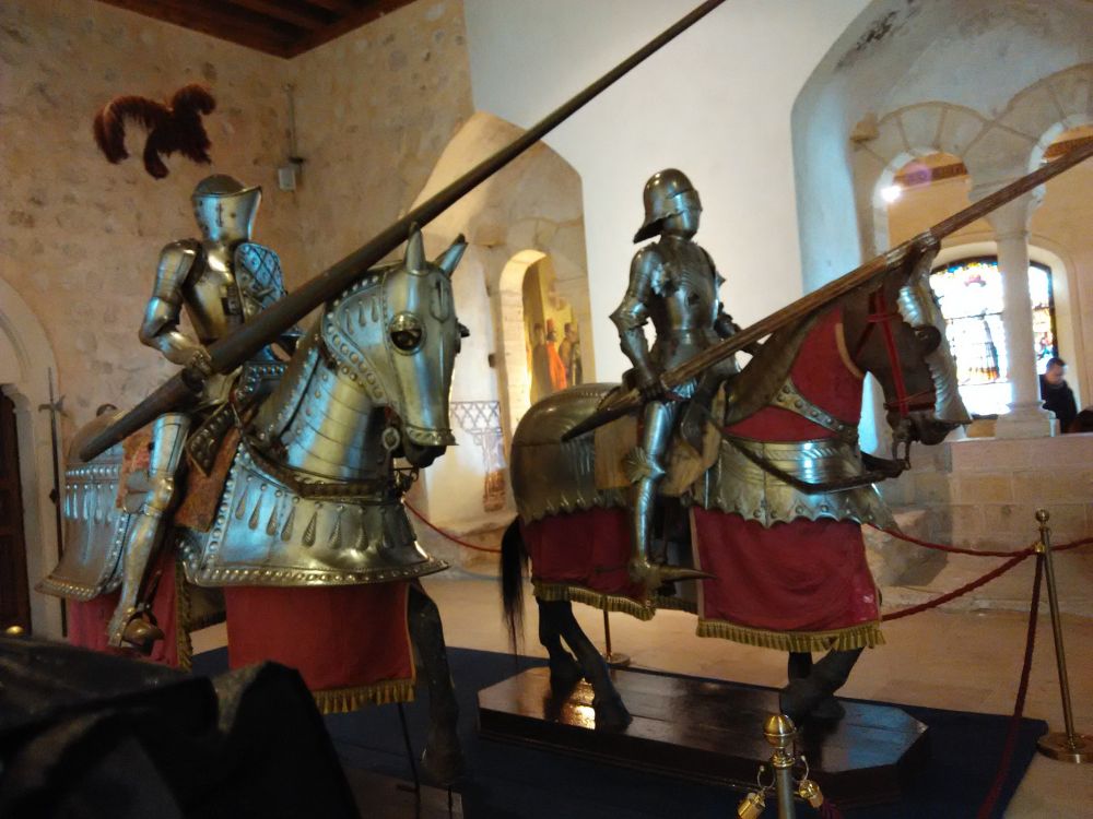 古堡入口处一扮武士的瘦小的当地人穿得单薄,让雨淋得哆哆嗦嗦的,可是很忠于职守在那不挡雨的标饰下躲着。要挣点,不容易啊。