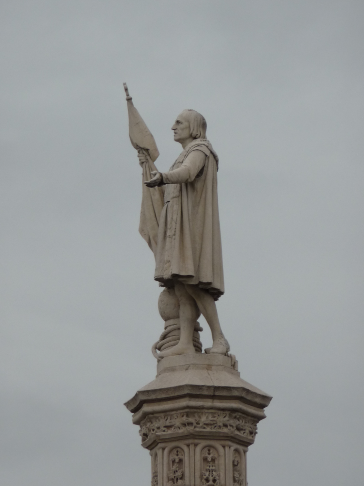 哥伦布,人们在附近升起国旗向他致意。殖民地,财富,帝国,和天主教的荣誉就是他雕像的基石。难得的是有一拿出私藏支持他远航的伊利莎白皇后,第三座雕像的右手拿到珠宝夹子表现出这女性的远见和决心。
