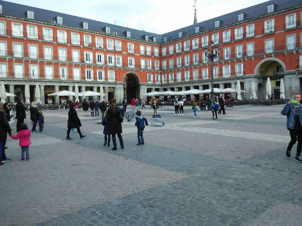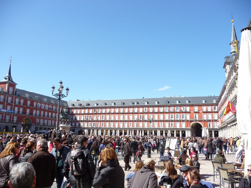 马德里的市政广场,很热闹。门廊下还有卖前苏联纪念品的货摊,不少苏军勋章和制服。