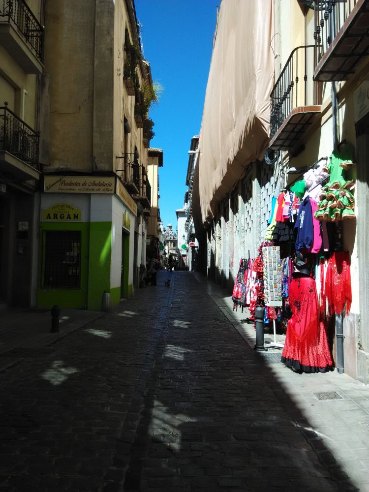 傍晚到达格拉纳达(Granada)。在小街闲逛,可以买到跳弗拉明戈的服饰,街道保持着数百年传承下来的风格。