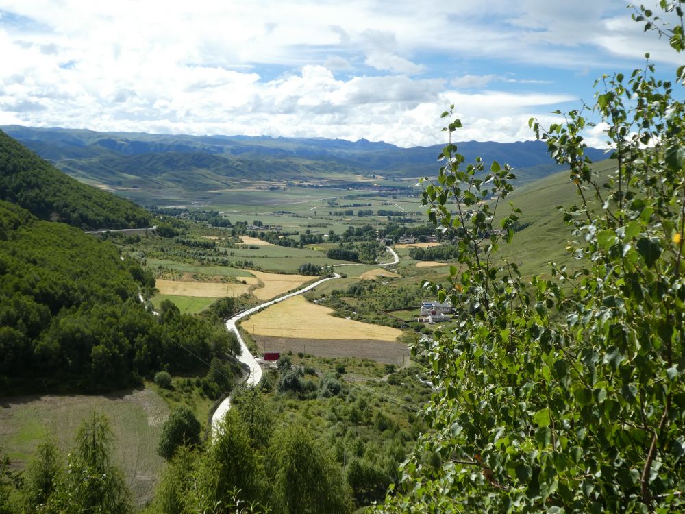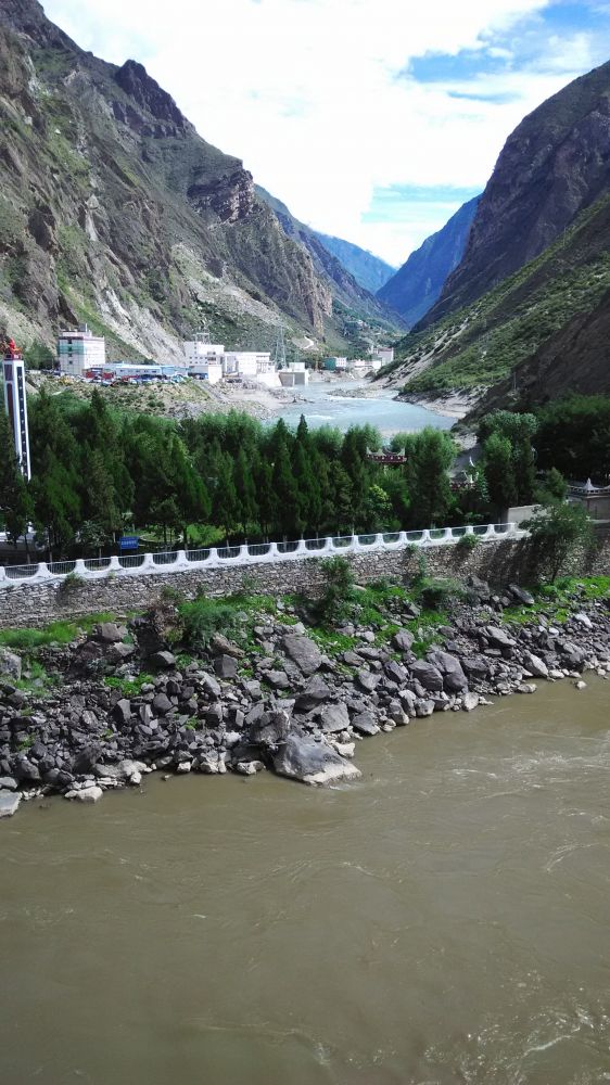8月26日到达丹巴县城。川西北踞横断山脉与青藏高原相邻。常见丹巴这种小城只能局促于从重山中破壁而出的河道旁。很典型的依山傍水,河岸高且陡,在狭窄的岸边,城市仅有两三条街的宽度而沿水而建。这里有大小金川两条清浊不同的河汇流,浊水来自大金川,清水来自小金川。大渡河始挟两川之势,切横断山,汇岷江。高原冰水,流急浪涌,看着就有“胆寒”之感。如今藏,羌,汉民族也共生在这里。