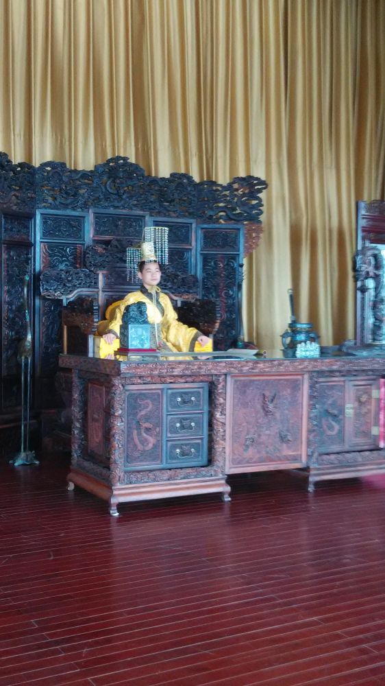 越王楼,当然是新建的,说要有不输于黄鹤楼和滕王阁之势,99米,幸好有电梯可助脚。到顶楼,有可供人做皇帝及嫔妃梦的道具可租。那位少年上位了,“皇上”的父母忙前忙后地给皇上照定妆照。实在说,那椅子不如沙发舒服,所以当老百姓比当皇帝好。梦,别当真。