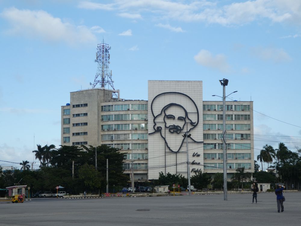 哈瓦那,革命广场。装饰在国家安全委员会大楼前的切-格瓦拉头像下,很时髦的游客围观着上世纪六十年代的遗物。好奇,震撼,兴奋,织出一张张不同的错谔表情。