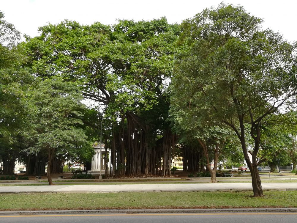 一个古巴革命者的塑像很严肃地俯视着百年的榕树广场(图一到图四),六十年以来,那条尽头就是海洋的路(图五,图六)还是带给人无穷的向往,人们可以在海那边找到没有革命者折腾的自由天地。