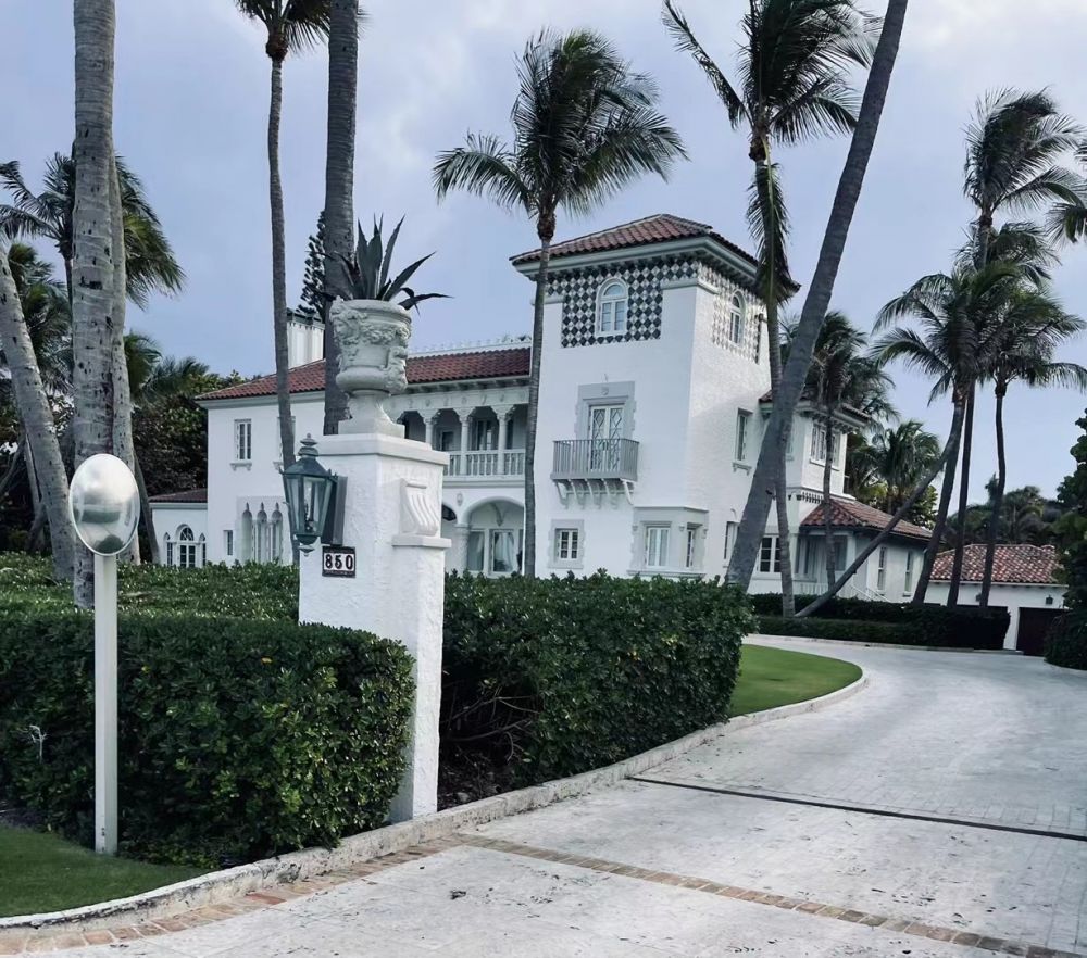 从迈阿密到棕榈滩(Palm Beach)大概是一小时的车程。去川普的海湖庄园(Mar-a-Lago)门前转了一阵(图14-15),那门前不让停车,我们也没有那时那位中国大妈的胆量,揣着手机和I-Pad就敢往里闯。只能开着车用低于20英里的时速绕着那附近转,一串车也不哼不哈地跟在后面,从倒后镜里看不像是那些五大三粗的联邦特工,估计那也是像我们一样的没见过世面的乡下人。