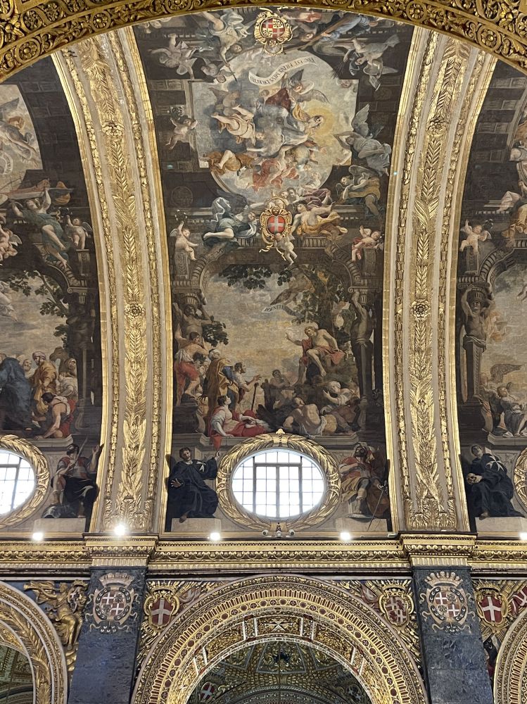 从步行十分钟即可到的16世纪建成的圣约翰主教堂(St. John’s Cathedral,图50-58)富丽堂皇的装饰堪可比美梵蒂冈的圣保罗大教堂。每幅精美的天顶绘画,油画和饰品都出自名家且年代久远。地面的由不同颜色大理石镶嵌出4百多名著名骑士的墓碑。不过实在别指望区区几小时能了解这个教堂里的故事。
