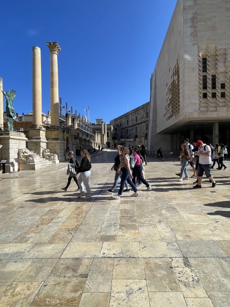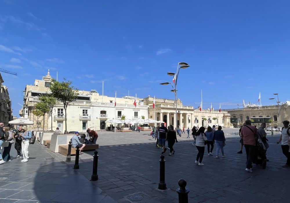 从旧兵器博物馆出来可以坐着面对圣乔治广场舒展一下(图46),这里又是和煦宜人的阳光和渗人心脾的清新空气,马耳他冬无严寒,夏无酷暑,社会安定,难怪被视为欧洲后花园。