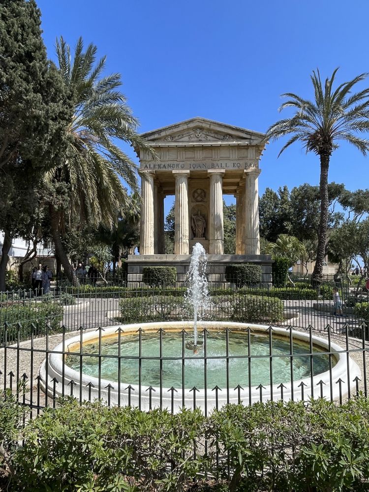 瓦莱塔的城市之门重建于上世纪中期,以三海神喷泉(图5)在广场(图3-4)中作"点睛之笔",入城后有很气派的议会大厦阶梯(图7)相衬,与城中古建筑风格相呼应。城中面海港的高地上的是上巴拉卡公园(Upper Barrakka Gardens,图9-11),既是旧城堡也是观景台。海风送爽,天蓝水碧,远近皆景。留意到观景台上有两块很显眼的碑是纪念美国军人(图12-13)。碑文铭刻:美国一支海军分遣队在十九世纪初由“宪法号”战舰带领在马耳他海域为自由贸易的商船护航时曾屡次与海盗交手;二战期间,美国军人在血与火的搏击中为马耳他争得了自由。马耳他人懂得感恩,他们其实也为世界近代史刻下一块路碑:在争取和维护自由的道路上,美国人从不缺席,尽管要为此付出不菲的代价。