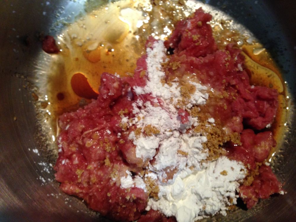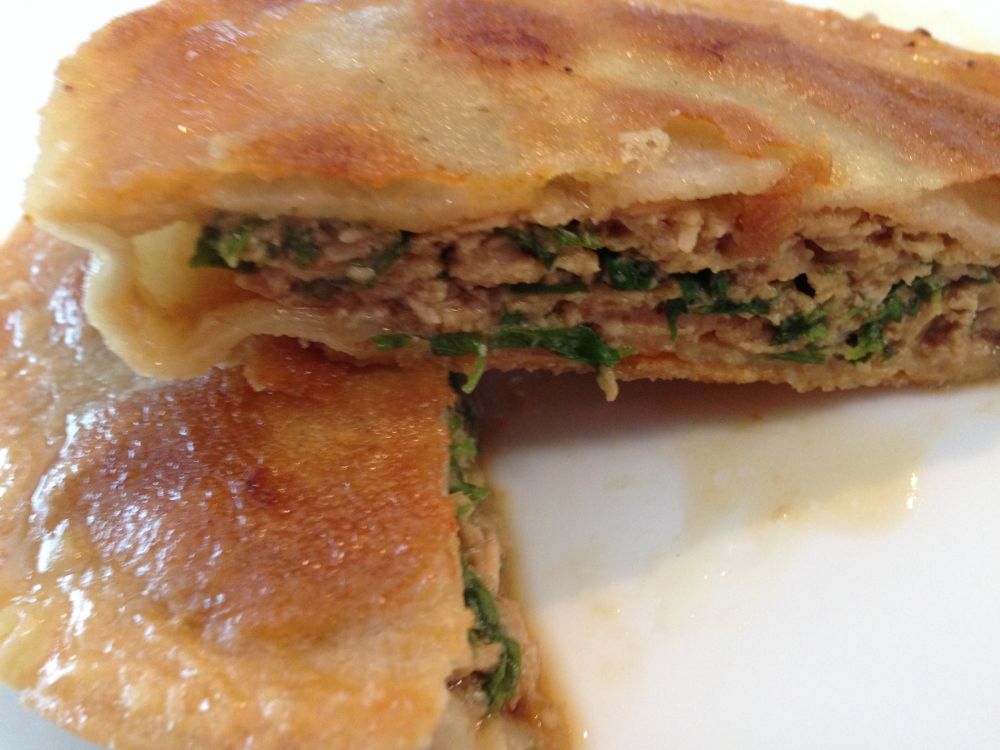 - 在与香菜调和之前,羊肉一定要先与一至两小茶匙淀粉调和。加淀粉的目的,是使淀粉包住羊肉。吃时羊肉有滑嫩的口感。没有淀粉,煎熟馅饼内的羊肉是一颗颗硬的颗粒。馅饼的口感将会掉一个等级。
