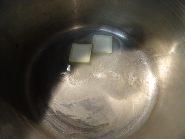 2.1 文火将咸肉的油熬出。将咸肉块从油中取出。只用油。