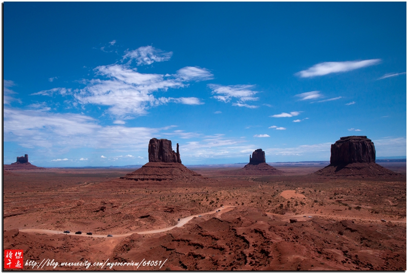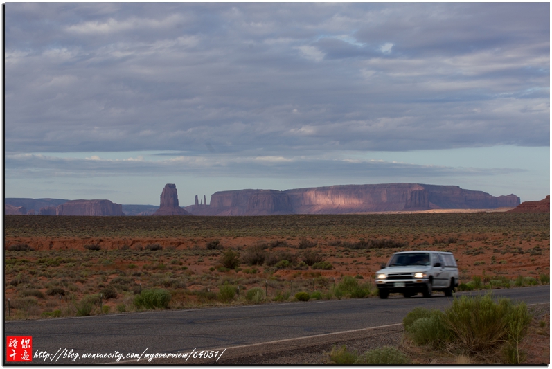 Monument Valley(纪念谷),这个在很多美国西部大片里都会见到的景观,最著名的奥斯卡获奖片“阿甘正传”其中一幕就在这里拍摄的。Monument Valley坐落在Utah州和Arizona州的交界处,此地归属当地印第安人所有,所以这里的国家公园们门票是无效的,好在每人只收五美金,绝对价有所值。