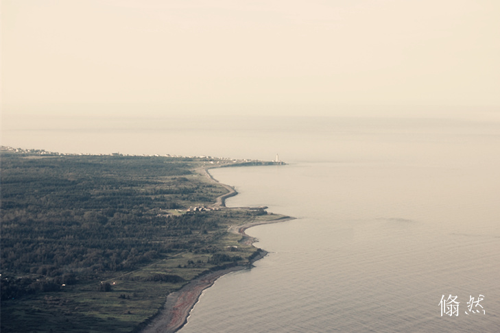 另一个方向可以看见 Cap-Des-Rosiers半岛清晰而优美的轮廓和岛上那个高高的白色灯塔,还有,还有,(参照图片)......