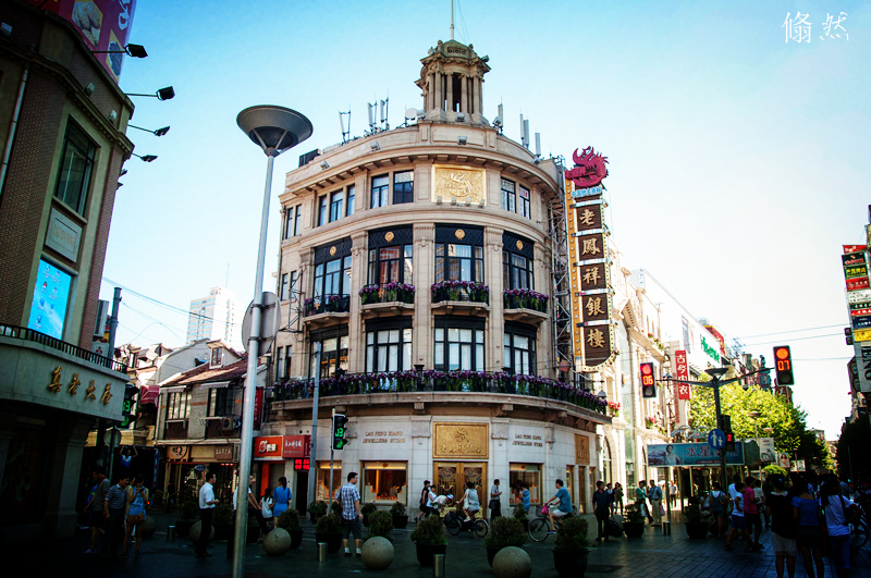 这天是个大晴天,但有些微风,所以不觉得很热。导游也说我们人品不错,没赶上前几天的酷热。车开出来第一站就是南京东路步行街。上海我已经来过几次了,两 年前还在这里住了一个星期,但孩儿们却是第一次,他们之前对北京和辽宁的印象都不是很好,至今沉湎于对日本的思念中,所以上海是我的最后一棵救命稻草:希望藉此能为我天朝在孩儿们面前挽回一些颜面。